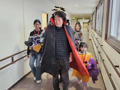 ハロウィーン祭りも近いとあって子供たちは飾りに真剣に取り組んでいた。学習の途中にハロウィーン祭りの恰好をした子供たちが教室に入ってきた。顔にペインティングをした子供が何人もいた。さらに手作りの衣装を纏ってハロウィーンの雰囲気を盛り上げていた。支援者たちも奇抜な衣装を纏いハロウィーンの世界に溶け込んでいた。日本にはあまりハロウィーン祭りは馴染がないからどう対処したらいいのか戸惑ってしまった。回ってきた子供たちに用意されたお菓子を上げた。