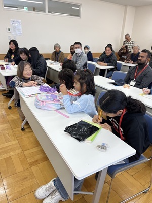 学習者は10人。インド人2名、中国人2名、ネパール人2名、パキスタン人2名、フィリピン人1名、ペルー人1名。支援者は19名今回もケーブルテレビが入るというので緊張感につつまれてしまった。どんな場面を撮られるのかと思うとやはり気になってきた。撮られることになれていないからかもしれない。「カメラに撮られたくない人はいませんか」とカメラマンが声を掛けてくれた。数人が手を挙げた。「後ろからなら大丈夫です」と直ぐにポジティブな声が聞こえてきた。カメラに映りたくない人もいるのは確かだからカメラマンは大変だと思った。