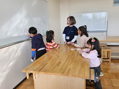 今日の参加は4名。この4名はずっときてくれている[固定客…常連さん]なのでこちらとしても安心感があります。一見さんも大切ですがやはり常連さんがいることはとても安定するというか,基礎が固まるような感覚です。さあ,今日も常連さんとの『いつもの!』『はいよ!』という阿吽の呼吸でスタートです♪先週やった文字カードを使った言葉探しが面白かったようで、またやりた〜い!の声。望むところだ!と始めました。でも先週と同じではきっとすぐに飽きるので、少しやり方を変えてみました。先週はカードをめくって出た文字で始まる言葉をみんなで言い合いましたが、今日は1人一文字!自分がめくったカードの文字を自分だけが書く。と言ったルールに変更!すると…あれ?一つ二つはすぐ出るけれどその後が続かない!先週はあんなに次々と出てきていたのに!そして何故か順番待ちに回ると次々出てくる!………あーこれ、TVのクイズ番組で、家で見てるとすぐに答えられるのに,回答者の席に座ると答えが出てこない…って言うアレ。(あ、私、クイズ番組出た事無いですけどよく言うじゃないですか!スタジオには魔物が住んでいる!的な?)これきっと、心理学的にナンチャラって言う現象なんでしょうねー。と1人で納得していましたが、いかんいかん!このままではゲームがつまらなくなってしまう!という事で、助っ人OKにして思いついた子は言葉を発し、回答者はそれを書く。と変更。この時,いやらしい大人は自分が勝つために決して思いついても言わないのでしょうが、純真な子どもたちはどんどん助けます。でも自分のカウントも気にしています。この矛盾が『子どもらしさ』なんでしょうねー。