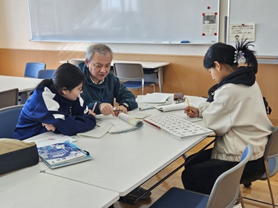 高校2年Nさんは私が担当しました。初参加のため学習者情報を作成し、漢字の学習を希望していることを確認しました。そのあと、漢字検定4級の問題集を使った学習の応援をしました。その際には、表音文字のひらがな、カタカナ、アルファベットなどとは異なり、漢字は表意文字なので、文字自体がもつ意味を理解するのが大切であることを一緒に考えました。また、音読みと訓読み、やまとことばを使うと漢字の意味が分かりやすいことが多い点も確認しました。最後に、Nさんに感想を書いていただきましたので、以下に紹介します:「私は今日初めて、自主(夜間)中学に来ました。先生方がとても優しく接してくださったので、緊張せず、楽しく勉強できました。今まで知らなかった漢字のことなどを教えてくれたので、嬉しかったです。外国籍の方ともお話しできて楽しかったです」。(佐々木一隆)