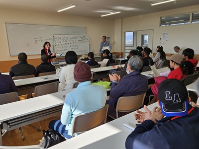 O町にある大手の会社で働いているとハッキリした言葉で返してくれた。2人の通訳をしてくれた。2人は2週間前に来たばかりと教えてくれた。2人は僅かな日本語しか話すことしかできなかった。Sさんは日常の挨拶から始めていき、さらにひらがなと進んでいった。そこにかなり遅れて支援者のTさんがやってきた。Sさんが2人を支援していたので加わってもらった。まさか協会のSさんに支援の協力をしてもらうなんて思ってもみなかったので驚くと同時に、社会人クラスはハプニングの連続で成り立っているのだと改めて強く感じた。