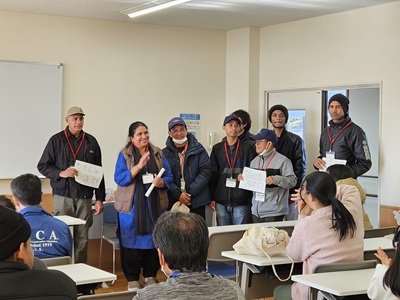 「あなたの国はどこですか」とすかさず尋ねたらすぐに「インドネシア」と答えてくれた。インドネシアの人は初めてのような気がする。更に続けていくとT市内では大手のI食品会社で働いているという。I食品は県内でも知られている会社だ。テレビのコマーシャルで流していたこともある。さらに聞いていくとN5を学びたいという。N5を学びたいということはどこかで日本語を学んでいたのではと膨らませてみた。学習が始まると一人とり残された。誰に支援してもらうかまわりを見回したらSさんが入口付近に佇んでいた。Sさんしかいないと決めて支援をお願いした。Sさんは今回息子さんと参加してくれた。SさんはFさんの支援をしてくれることになった。最後のミーテングでFさんが自己紹介をした後に、Sさんが学習状況の報告をしてくれた。日本語の能力はかなりあるとのことだった。