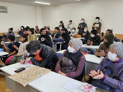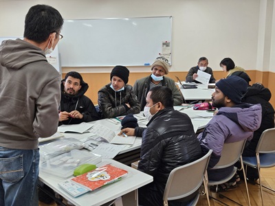 12月14日に開催された第42回蔵の街校の学習者は、小学生クラス4名、中高生クラス2名、社会人クラス17名の計23名でした。スタッフは3クラス合わせて18名。この日は学習者4名とスタッフ1名が新たに参加し、今までと同様 楽しい学びと交流ができました。ただし、今回も特に社会人クラスのスタッフ不足のため、日本語学習入門期の学習者6名(全員バングラデシュ出身)については、経験のある社会人スタッフ1名が対応しました。また、中高生スタッフ1名が社会人クラスの応援に入りました。なお、小学生クラスもスタッフが少なかったため、社会人スタッフ1名が応援に行きました。こうした調整を行った結果、一部を除き、基本的に学習者1名にスタッフ1名という学習活動が可能となりました。スタッフ数が足りない時にどう対応するかが最近の悩ましい課題となっています。