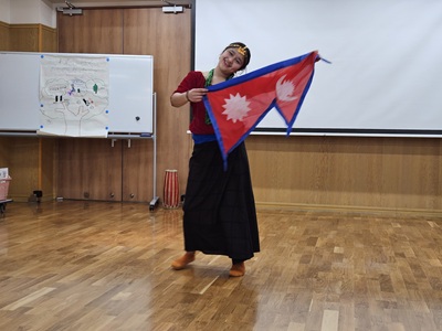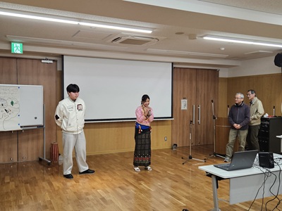 パキスタンのご夫妻がパキスタンの歌を披露してくれました。21日の学習の時に、たまたま自分が応援することとなり、いろいろなトピックで話をしていたのですが、どういう流れだったか祖国の歌の話になり、その日の振り返りのミーティングの時に披露してくれたのです。交流会でもお願い!と頼んだところ、即答でOKをもらいました。ご夫妻の歌の後には、10代の若者2人が参加してくれました。ネパール民謡「レッサン フィーリィーリィー」(絹のサリーがひらひら)。2024年8月末に開催した『中学教科単語帳』(日本語⇒ネパール語)発行記念交流会を大いに盛り上げてくれた民謡です。発行記念交流会では踊る人が続出しました・・とてもノリが良いリズムで思わず身体を揺らしたくなります。