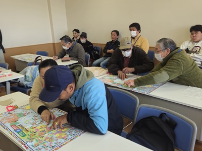 全体のミーティングで「勇気あるもの」を合唱する。学習が終わった後のミーティングでも合唱する。Tさんが鍵盤ハーモニカ演奏で盛り上げてくれた。