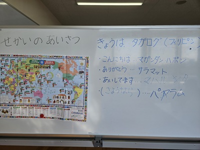 「せかいのことば」はフィリピンの言語・タガログ語でした。先生は中学生のKくん。いつもの「こんにちは」「ありがとう」以外にも「あいしてます」「さようなら」とこれだけ知っていれば相当さまざまな場面で交流できると思われる言葉を教わりました。途中、お母さんとパッと会話をしていたのを見ると「さっきまでここで日本語を使ってSとYと会話していたのに!?」とその切り替えの早さに改めて驚きます。