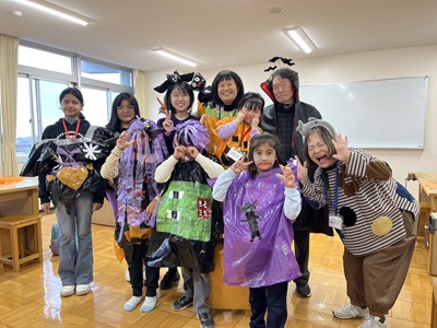 皇帝田巻バンパイヤを先頭に子どもたち、意気揚々と大人学習者の元へ。お菓子をもらうことも嬉しいけれど、何より衣装を見てもらい褒めてもらうことが嬉しくて仕方ない様子でした。6年生はやや恥じらいの様子もありましたが、優しい心が溢れた笑顔で年下の子達をサポートしてくれました。パレード?の前に「お菓子をもらったらお礼にお菓子をあげよう!」と決めていて、その説明がうまく伝わっていなかったのか、もらってはあげ、それをもらってはあげていたので、結局手元に1つしか残らず・・たくさんのお菓子を手にした子をよそ目に粉々になったお煎餅1つを握りしめていたゾンビがひとり。。。でも本人はとても満足そうでした❤︎