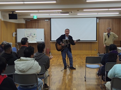 次は、演奏です。アコーディオン、オカリナ、サックス、それぞれ2曲披露してくれたと思います。どれも素敵な演奏でした。そして、ギターによる弾き語り。1曲目は「戦争を知らない子どもたち」。2曲目は巴波川をテーマとする作詞・作曲のオリジナルソング。栃木市に対する熱~い想いが伝わってきました。