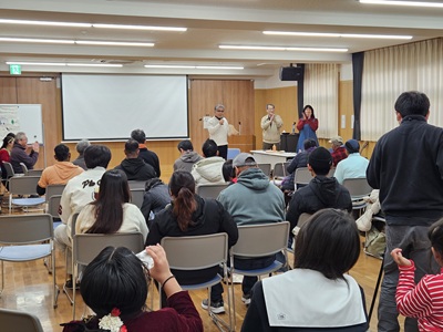 2025年12月28日、今年最後の開催日に交流会を行いました。1年を振り返りながら、とにかく楽しむことを目的とする交流会です。学習者、スタッフ、様々な形で蔵の街校の活動を支えてくれた方々に声をかけました。55名の参加がありました!参加型の交流会を目指しました。交流会の様子をごく簡単にお伝えします。たくさん写真を載せます。当日参加できた人は思い出してください。参加できなかった方には当日の様子や雰囲気を感じ取ってほしいと思います。