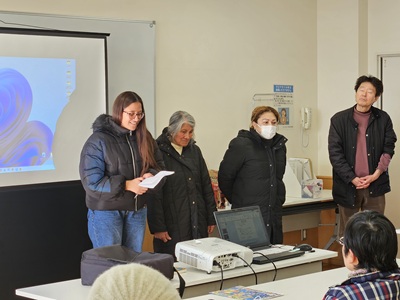 学習者22名。ペルー人3名、パキスタン人3名、ネパール人3名、ベトナム人2名、スリランカ人2名、日本人2名、中国人2名、バングラデッシュ人2名、インド人1名、フィリピン人1名、インドネシア人1名。新しく参加してくれた人は6名です。そんな中で日本人が1名参加してくれました。新しい年に多くの人が参加してくれたで希望が湧(わ)いてきてうれしく思いました。学習者22名の参加となりスタッフが足りなくなってしまいました。スタッフ一人で3名の学習者を支援しているのが3名いました。学習者が多く参加してくれたのは嬉しかったのですが、対面(たいめん)の学習支援が出来なかったのが反省点です。