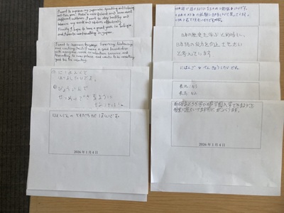 ・「目標:沢山参加する、取り組んでみたいこと:大人の学習者との接点を持ちたい(例 イベント的なもので日本語を意識した学びのあるレクレーションのような…)」・毎回同じような写真になってしまうので工夫したい。もっと楽しさが伝わるような写真を撮りたい。人手が足りない時は、社会人の日本語学習のお手伝いをしたいです。
